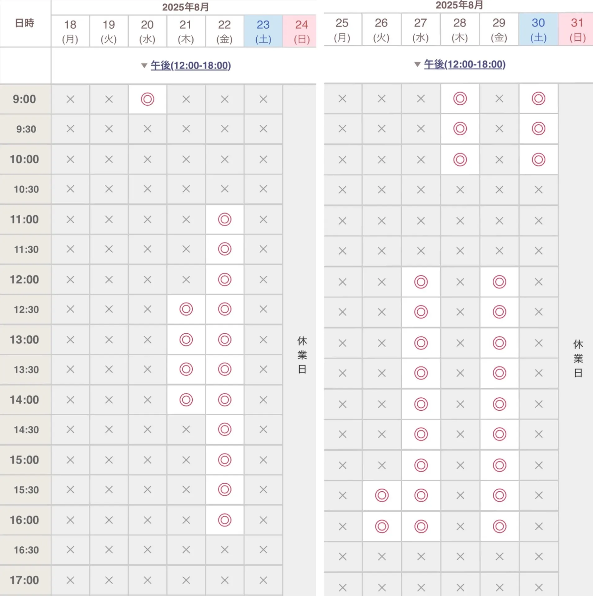 8月の空き状況