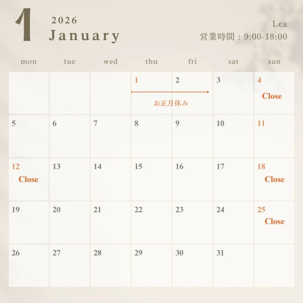 2026年1月の営業日のご案内📢